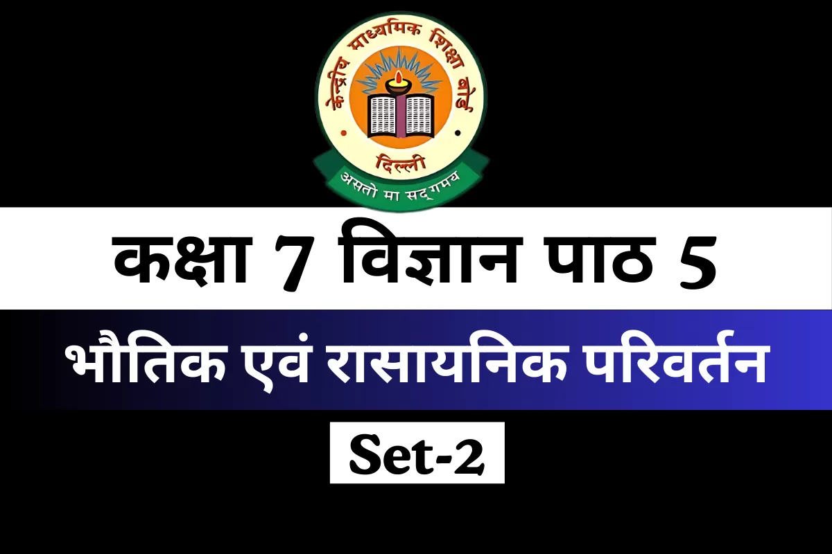 हमारे आस-पास हर समय कई प्रकार के परिवर्तन होते रहते हैं – बर्फ का पिघलना, कागज़ का जलना, लोहे में जंग लगना। लेकिन सभी परिवर्तन समान नहीं होते। कक्षा 7 विज्ञान पाठ 5 – “भौतिक एवं रासायनिक परिवर्तन” में विद्यार्थी सीखते हैं कि कुछ परिवर्तन केवल अवस्था बदलते हैं जबकि कुछ परिवर्तन नए पदार्थ का निर्माण करते हैं। कक्षा 7 विज्ञान पाठ 5 भौतिक एवं रासायनिक परिवर्तन Online Test- Free MCQs. Class 7 Multiple choice questions for the ongoing exam. यह एमसीक्यू विशेष करके recent सत्र के परीक्षा के लिए सीबीएसई बोर्ड पर आधारित हैं, और कक्षा 6 के विज्ञान के नए पाठ्यक्रम पे आधारित हैं। आप पुरे पाठ का आँकलन और सभी टॉपिक्स को आसानी से समझ सकते हैं। क्योंकि दिए गए प्रश्नो को इसी सत्र के लिए परीक्षा के लिए बनाया गया है लेकिन इसके साथ-साथ अन्य प्रवेश परीक्षा के लिए भी तैयारी कर सकते हैं।