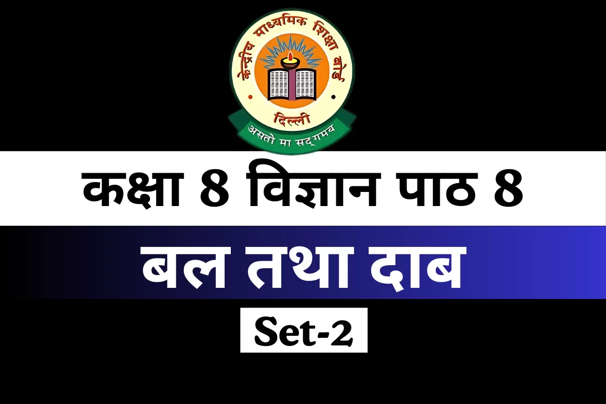बल और दाब विज्ञान के मूलभूत सिद्धांत हैं, जो हमारे दैनिक जीवन में बहुत उपयोगी हैं। कक्षा 8 विज्ञान पाठ 8 – “बल तथा दाब” में विद्यार्थी यह सीखते हैं कि बल कैसे किसी वस्तु की गति बदल सकता है और दाब का प्रभाव क्षेत्रफल पर कैसे निर्भर करता है। कक्षा 8 विज्ञान पाठ 8 बल तथा दाब Online Test- Free MCQs. Class 8 Multiple choice questions for the ongoing exam. यह एमसीक्यू विशेष करके recent सत्र के परीक्षा के लिए सीबीएसई बोर्ड पर आधारित हैं, और कक्षा 8 के विज्ञान के नए पाठ्यक्रम पे आधारित हैं। आप पुरे पाठ का आँकलन और सभी टॉपिक्स को आसानी से समझ सकते हैं। क्योंकि दिए गए प्रश्नो को इसी सत्र के लिए परीक्षा के लिए बनाया गया है लेकिन इसके साथ-साथ अन्य प्रवेश परीक्षा के लिए भी तैयारी कर सकते हैं।