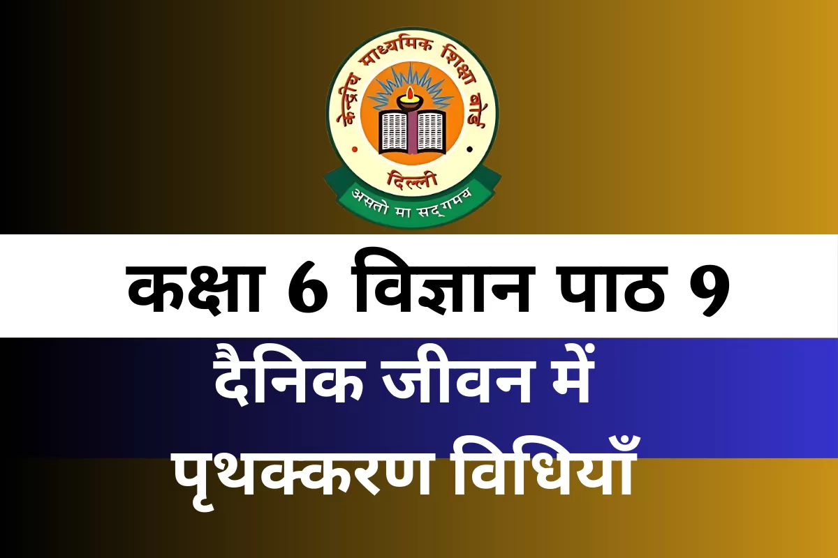 कक्षा 6 विज्ञान का पाठ 9 “दैनिक जीवन में पृथक्करण विधियाँ” हमें यह समझाता है कि विभिन्न पदार्थों को अलग-अलग क्यों और कैसे किया जाता है। हमारे रोज़मर्रा के जीवन में भोजन, पानी और अन्य वस्तुएँ पूरी तरह शुद्ध नहीं होतीं। उनमें अशुद्धियाँ मिली होती हैं, जिन्हें हटाने के लिए पृथक्करण की विधियों का प्रयोग किया जाता है। यह अध्याय छात्रों को विज्ञान को व्यवहारिक रूप में समझने में सहायता करता है।