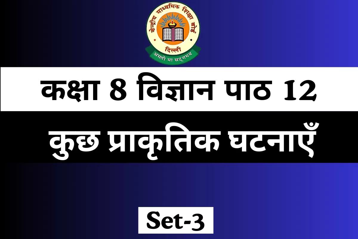 कक्षा 8 विज्ञान का पाठ 12 “कुछ प्राकृतिक घटनाएँ” भौतिक विज्ञान का एक महत्वपूर्ण अध्याय है। इस अध्याय में विद्युत आवेश, आवेश के प्रकार, घर्षण द्वारा आवेशन, आकाशीय बिजली (तड़ित), भूकंप और उनसे बचाव के उपायों को सरल भाषा में समझाया गया है। परीक्षा में अच्छे अंक प्राप्त करने के लिए MCQs Online Test का अभ्यास अत्यंत आवश्यक है।